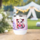 Cute personalized tumbler with cartoon opossum with possum pun, "awesome possum". Cute pink possum in pink flowers holding a heart.
