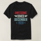 My 11 yo wore adult XL (5’7” 165#). The 8yo is small framed. She wore adult small and tied it in the back. Grandma wore adult large with long sleeve shirt underneath. Tall girl adult medium. Dark haired male adult large. Good quality dark Heather gray, Gildan brand shirt. -it was next up from basic choice and cost about $20 per shirt. Not too thick or thin. Washed and dried well, no major shrinkage. Not see-through. Can wear a bra under it fine. Screen print is just as shown and well done, front and back.