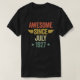 My 11 yo wore adult XL (5’7” 165#). The 8yo is small framed. She wore adult small and tied it in the back. Grandma wore adult large with long sleeve shirt underneath. Tall girl adult medium. Dark haired male adult large. Good quality dark Heather gray, Gildan brand shirt. -it was next up from basic choice and cost about $20 per shirt. Not too thick or thin. Washed and dried well, no major shrinkage. Not see-through. Can wear a bra under it fine. Screen print is just as shown and well done, front and back.