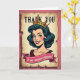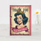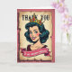 This card features a retro comic-style portrait of a smiling woman centered on a faux-aged parchment panel set against a deep rose-pink background. Her dark, wavy hair frames bright green eyes, rosy cheeks, and glossy red lips, and her gentle, confident expression feels like a friendly wink ❤️. A golden crown sits on her head, dotted with jewel-like accents in several colors, giving her a celebratory, affectionate “queen for the day” look. The parchment area has a lightly speckled texture with distressed, torn-looking edges that resemble an old poster. Near the top, “THANK YOU” appears in large serif letters, set in a dark ink tone that stands out clearly against the pale paper. Below the portrait, a crimson ribbon banner with a thin white outline carries the message “to one awesome stepmom!” in slanted, flowing lettering, with a small 🌼 detail tucked near the ribbon’s curve. The overall palette mixes warm pinks, gold, and rich reds with crisp outlines and simple shading for a classic pop-art feel. In the background, the rose-pink field stays solid and smooth, making the parchment panel and its rough edges the main visual focus.