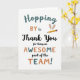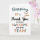 This card features a bright thank-you message centered on a plain white background, using a mix of flowing letterforms and thick uppercase words for contrast. Teal, burnt orange, and deep charcoal tones alternate through the lines, giving the layout a friendly, work-appropriate look. Near the opening words, a pair of upright bunny ears with soft pink inner details adds a gentle, companionable touch 🐰. A yellow pencil with a pink eraser sits nearby, angled as if it just helped write the note, suggesting shared effort and an easy teamwork bond. The text is stacked in the middle of the page, with smaller lines above and a larger, all-caps emphasis near the bottom, and the strongest words appear in the darkest color. Spacing between phrases leads your eye downward, like a conversation moving from a small nod of appreciation to a bigger shout-out. Tiny accent marks and color shifts keep the message lively without crowding the open background 🌷. The bunny ears sit just above the first line on the left, while the pencil rests to the right of the opening phrase with its eraser pointing upward.