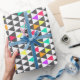 Awesome trendy retro geometric triangle pattern, grey, pink, blue, yellow, orange, green, white, bright vivid neon colours. Art, abstract, shapes, modern, décor, creative, illustration, tribal, artwork, style, design, Fashionable, strength, trend, whimsical, unique, artistic, cute, pretty, popular, modern, dreamy, spiritual, fresh, glamorous, beautiful, cool, sweet image. Personalize it with your name favourite word or phrase by clicking the customise button and add text, choose the text font and colour. Image print
