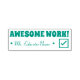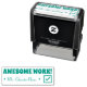 This inspirational rubber stamp design features the praising message "AWESOME WORK!" and a customized teacher's, educator's or tutor's name. It also features a decorative checkmark. It could be used by a school teacher, educator, or tutor when marking assignments, to acknowledge that the student has done well.