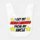 I Get My Awesomeness From My Uncle cute cartoon bib. A great bib for a baby boy or girl with an awesome uncle. Get it for your own baby niece or nephew or surprise your brother with this cute, newborn bib.