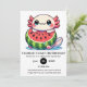 A super cute axolotl sitting in a juicy watermelon float with sparkling eyes and rosy cheeks. A fun and refreshing design for summer-themed parties or adorable art collections.