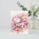 This postcard features an adorable light pink axolotl salamander among flowers in a feminine floral animal portrait. The axolotl has a gentle, whimsical expression, with its distinctive external gills painted in a vibrant pink that harmonizes with the overall palette. It is surrounded by lush, blooming flowers in shades of pink and peach, with delicate leaves and botanical elements adding to the composition. The soft and dreamy color scheme, combined with the detailed depiction of the axolotl and florals, creates a charming and serene image.