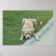 Cute yellow labrador retriever puppy lying down and pouting poster design. Funny and unique.