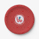The Azorean LOVE FLAG on personalized paper plates for your occasion. The word LOVE is featured in red letters inside a white, fractal circle of squiggly squares. The circle sits on a red, fractal background, also, of squiggly squares. Great for your guests at your next occasion or party to celebrate the Azores. Can be renamed for any occasion.