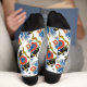 This fun Halloween socks are bright and colorful. The small print is crisp and shows the fun details. The softness of the socks feels nice on my feet and ankles. .