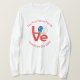 Azorean LOVE FLAG on a women's long sleeve T-shirt. The word LOVE is featured in red letters with a heart shaped flag of the Azores for the O. Perfect for a Valentine's Day gift for her. Can be customized for any occasion, Freedom Day, for example.