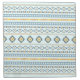 Aztec influenced mixed motifs pattern in blues, yellow and orange detail on a light blue background.