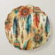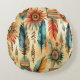 Aztec Boho Tribal Blue Feathers Round Pillow