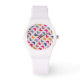 I only have one complaint. I ordered the watch with clear case and strap, and what was sent was white case and strap. I'm going to keep it because 1) it looks very nice in white, and 2) it would take too long to get a replacement made and sent in time for my occasion. Aside from the mix up with the color, the watch does look very good in white. The purple dial is actually sparkly which did not show in the online images. That was a nice surprise. If you like Swatch watches this is very similar to those. It's 33.6mm in diameter, 10.5mm thick, and 40.6mm lug to lug. Stainless steel case back says 3ATM/30m WR, so no swimming or showering or submerging this one. If you like Woodstock, this is a great choice.