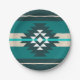 Aztec ethnic bohemian pattern with geometrical shapes in white, beige and turquoise colors on striped background