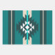 Aztec ethnic bohemian pattern with geometrical shapes in white, beige and turquoise colors on striped background