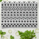An Aztec style design in a digital and vector pattern with black detail on a white background.