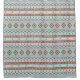 Aztec influenced mixed motif pattern in rust colors and a cream color detail on a blue background.