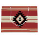 Aztec ethnic bohemian pattern with geometrical shapes in red, orange, grey and black colors on striped background