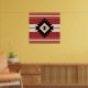 Aztec ethnic bohemian pattern with geometrical shapes in red, orange, grey and black colors on striped background