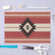 Aztec ethnic bohemian pattern with geometrical shapes in red, orange, grey and black colors on striped background