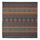 Aztec influenced pattern in symbols/motifs of rust colors and light teal on a black background design.