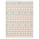 Aztec influenced shapes and line pattern in rust/terracotta color teal color detail on a cream color background.