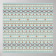 Aztec influenced shapes and line pattern in rust/terracotta colors and a cream color detail on a teal-blue background.