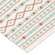 Aztec influenced shapes and line pattern in rust/terracotta color teal color detail on a cream color background.