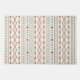 Aztec influenced shapes and line pattern in rust/terracotta color teal color detail on a cream color background. V = vertical pattern.