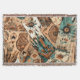 Aztec native American tribal design featuring a patchwork of boho southwestern blue and brown feathers, watercolor floral elements and geometric shapes.
