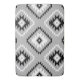 Aztec style motif in a diamond-shape surface pattern design in black, white and gray.