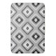 Aztec style motif in a diamond-shape surface pattern design in black, white and gray.