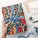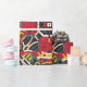 Vibrant Aztec-inspired wrapping paper featuring a bold geometric pattern in rich red, green, yellow, and black tones. This unique design adds a touch of cultural flair to any gift, making it perfect for festive occasions, birthdays, or special celebrations. The intricate patterns reflect traditional Aztec motifs, offering a distinctive and artistic look.