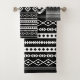 Aztec White on Black Mixed Motifs Pattern Bath Towel Set