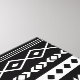 Aztec mixed motifs pattern in white detail on a black background monochrome design.