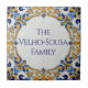 Azulejo Mediterranean Colorful Custom Name Plate House Plaque Sign. You can edit the text in the center, change the font, change the color, size, etc. Gift these tiles as custom name coasters for each family member, for friends or teams, use them for home accents on your bookshelves, in your living rooms and bedrooms, or as mosaic wall art with other tiles. Or leave the central space empty, and use as decorative backsplash ceramic tiles.