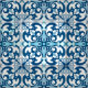 Portuguese Azulejo pattern with Fleur-de-lis element stylized lily composed of three petals bound together near their bases.