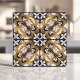 Bring the timeless beauty of traditional Azulejo tilework to your home with this stunning ceramic tile. The design features a symmetrical, stylized floral pattern in cobalt blue and white against a metallic gold background, creating a rich and elegant look. This tile is perfect for adding a touch of Iberian charm to kitchens, bathrooms, backsplashes, or as a decorative accent. Add a touch of class to any home.