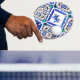 A beautiful vintage design of Azulejo Spanish and Portuguese pattern tiles pattern in navy blue, white and hints of green and light orange. The design can be customized to your matching monogram. A beautiful taste of the Mediterranean perfect for Summer home decor. The perfect rustic geometric mosaico ping pong table tennis paddle design, ideal gift for any occasion.