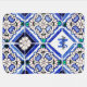 Azulejo Spanish Pattern Tiles Navy White Monogram Baby Blanket