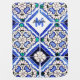 A beautiful vintage design of Azulejo Spanish and Portuguese pattern tiles pattern in navy blue, white and hints of green and light orange. The design can be customized to your matching monogram. A beautiful taste of the Mediterranean perfect for Summer home decor. The perfect rustic geometric mosaico design, ideal gift for any occasion.
