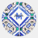 Azulejo Spanish Pattern Tiles Navy White Monogram Classic Round Sticker