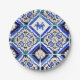 Azulejo Spanish Pattern Tiles Navy White Monogram Paper Plates