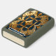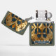 Ignite your style with this exquisite monogram personal lighter, a true fusion of luxury and utility. Its striking design features a gold geometric pattern set against a captivating blue backdrop, creating a unique and collectible aesthetic. This ornamental handheld accessory showcases sleek design and artistic sophistication with detailed and refined craftsmanship. A premium and stylish gift for any smoker or collector, this high-end lighter boasts a shiny metallic finish. You can add your own name for a personalized touch. Made in the USA, it comes with a "Fix it free" lifetime warranty on any mechanical issues or malfunctions, ensuring its timeless appeal and perfect function.