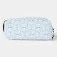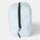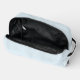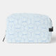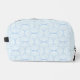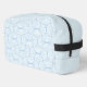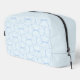 Discover our stylish toiletry bag featuring a sleek geometric pattern of light blue curved lines and petal-inspired shapes against a pale, nearly white background. Perfect for organizing your essentials with elegance and modern design.