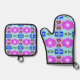 Azure Bloom Kaleidoscope Oven Mitt & Pot Holder Set