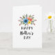 This Mother's Day card features a light, airy floral illustration that feels like a gentle bouquet offered with affection ❤️. Across the upper portion, a clustered arrangement of blossoms spreads out in a soft, natural shape, with larger flowers in deep blue, sunny yellow, and warm coral, shaded to look slightly translucent like watercolor. Smaller buds in soft purple and tender pink tuck between the main blooms, while green leaves and thin stems weave around them as if they’re leaning in close together. The white background stays open and uncluttered, giving the flowers room to breathe and making the scene feel calm and caring. Centered beneath the bouquet, the text reads “Happy Mother’s Day” in an elegant brushstroke-style font. The lettering is deep black and stands out clearly against the white space, sitting comfortably below the flowers without crowding them. Subtle brush textures and tiny uneven edges in the petals and leaves add a human touch, like a sweet note shared with someone special 🌼. The top half is filled with the bouquet, while the lower half holds the black text on a crisp white field.