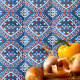 Azure Blue Red and White Ethnic Bohemian Pattern Ceramic Tile