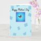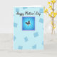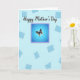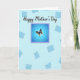This card features a centered square panel with a detailed butterfly whose orange-and-black wings include small blue accents, like a gentle nod of closeness ❤️. The butterfly sits on a deep-to-bright blue gradient that feels like a soft spotlight, giving the scene a calm, affectionate air. A thin lavender border frames the square, keeping the focus snugly on the butterfly. Near the top, the words “Happy Mother’s Day” appear in a flowing dark lettering, standing out against the pale sky-blue background. Around the main panel, faint light-blue geometric shapes float like airy frames, adding depth without crowding the design. Subtle white outlines trace these shapes, creating a light, tender rhythm across the background 🌼. The overall layout feels balanced and caring, with the text hovering above and the butterfly resting quietly at center. The pale blue backdrop is patterned with soft, rectangular outlines in lighter blue and white.