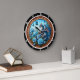 Step into a realm of enchantment with the Azure Dragon Blue Rose clock. This captivating timepiece features a high-definition graphic centered on a majestic, ice-blue dragon nestled among a lush garden of vibrant blue roses. Delicate blue butterflies flutter through the soft sky, adding to the serene, magical atmosphere. The entire scene is held within an intricately detailed, ornate copper-toned carved frame that enhances the mythical aesthetic. While the artwork masterfully mimics the dimensional textures of high-relief sculpture and oil-painted canvas, this is a durable high-definition graphic application on a premium round clock face. It serves as a prestigious and breathtaking focal point for any fantasy enthusiast or as a unique statement piece for a sophisticated home interior.